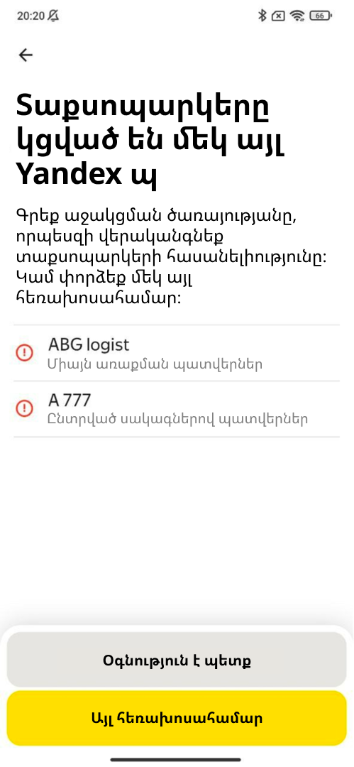 Մեկ այլ Yandex ID ընտրելու դեպքում կհայտնվի «Տաքսոպարկերը կցված են Yandex-ի այլ պրոֆիլի» սխալը.