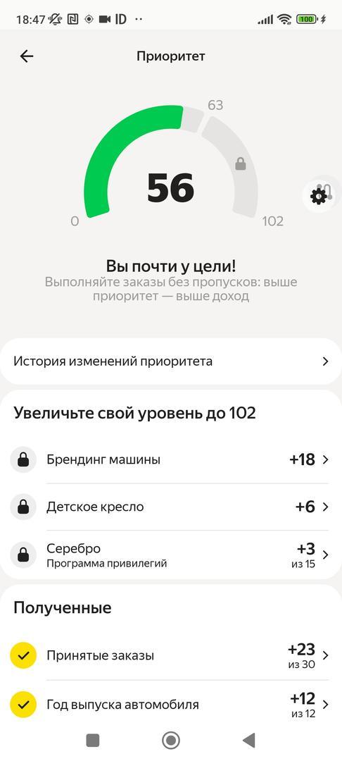 Если пропускать или отменять много заказов, можно потерять все баллы общего приоритета. В таком случае водитель не получит преимуществ при распределении заказов.