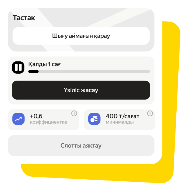 режим әзірше белсенді тапсырыс кезінде қолжетімсіз, сондықтан егер сізге тым көп тапсырыс түссе — алдымен үзіліс қойыңыз, содан кейін «Жол-жөнекей» режимін қосыңыз. Үзілісті өшірген соң тапсырыстар қайтадан келе бастайды