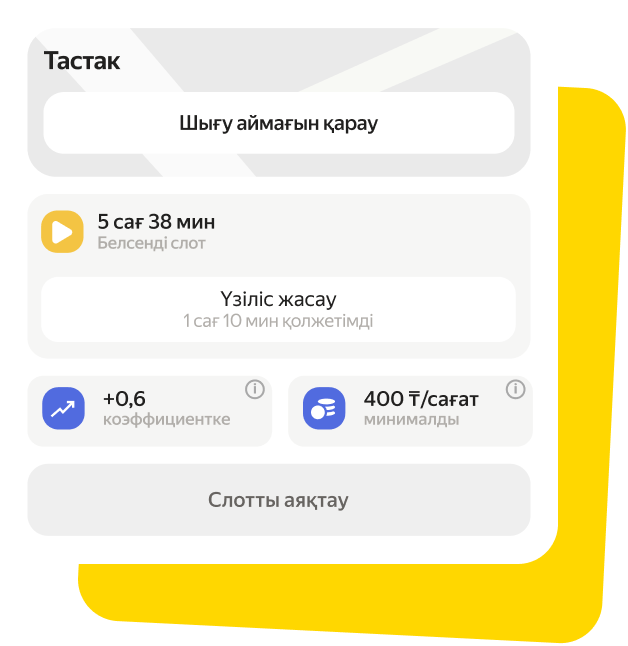 Слот кезінде өз шаруаларыңыз бар жерге жақын болуды немесе слот соңында үйіңізге жақын болуды қалайтыныңызды түсінеміз. Ол үшін «Жол-жөнекей» режимін қосып, картадан керек нүктені белгілеңіз. Жүйе сіздің жолыңызға сәйкес тапсырыстарды таңдай бастайды.