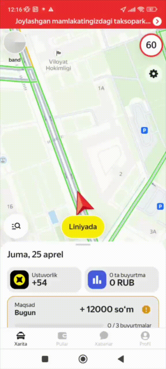 Haydovchi buyurtmalarni toʻxtovsiz bajargan sari oshib boradi.